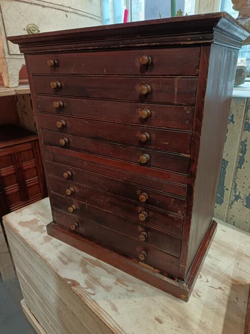 Watchmakers/collectors cabinet. ref 1232. SORRY SOLDPrice £295.00 Size Guide (W)55cm. (D)34cm. (H)64.5cm. *Rare piece. *Ideal art storage. Lovely antique cabinet from Victorian era , nine easy sliding drawers all in perfect working order. Ideal to sit on your desk or table. FOR SALE BREAD STREET PENZANCE TR18 2EQ CORNWALL. |