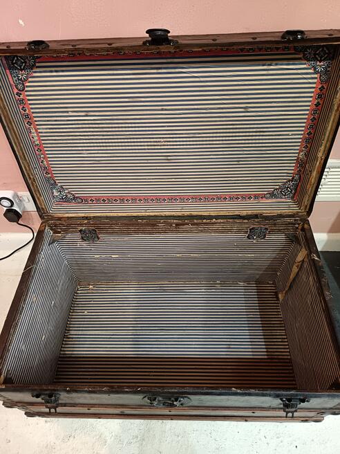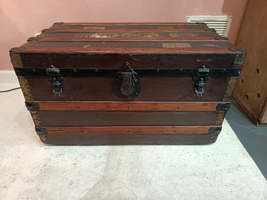 Antique Steamer Trunk. ref 1237Price £175.00 Size Guide (W)77cm. (D)45cm. (H,)44cm. *In lovely working order. All original untouched trunk circa late 19th century/early 20th century displays a desirable aged patina and generously sized. Suitable for all spaces. FOR SALE BREAD STREET PENZANCE TR18 2EQ CORNWALL. |