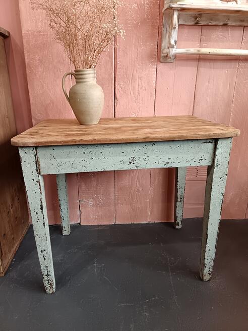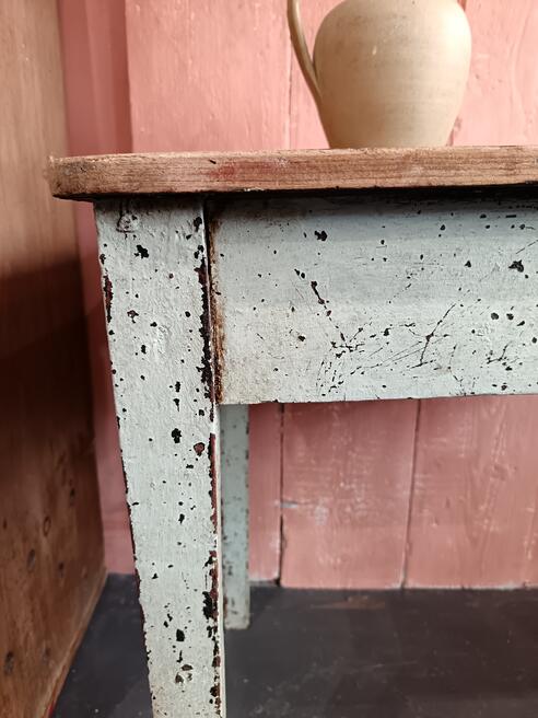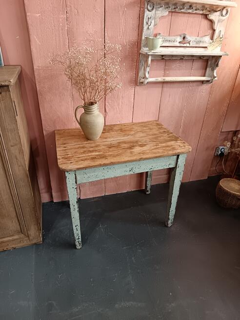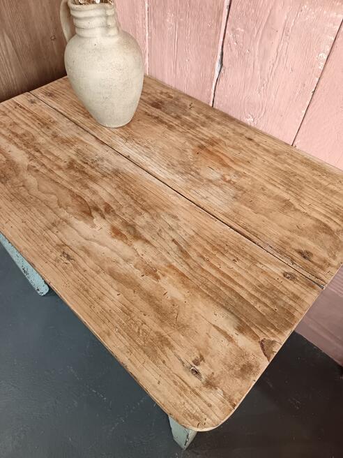 Antique Pine Country table. ref 1241Price £165.00 Size Guide 81x55cm. (H)70cm. Lovely old 19thC pine table with bundles of wear and character , natural pine top elevated on square tapered legs with peeling paint. Suitable for kitchens. FOR SALE BREAD STREET PENZANCE TR18 2EQ CORNWALL. |