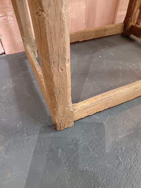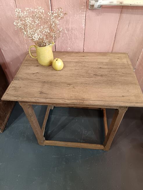 Showroom June . ref 1180Pair of 19th Century stick and wheel back chairs. Handcrafted Table/Stool. Handcrafted Oak stool/table. |