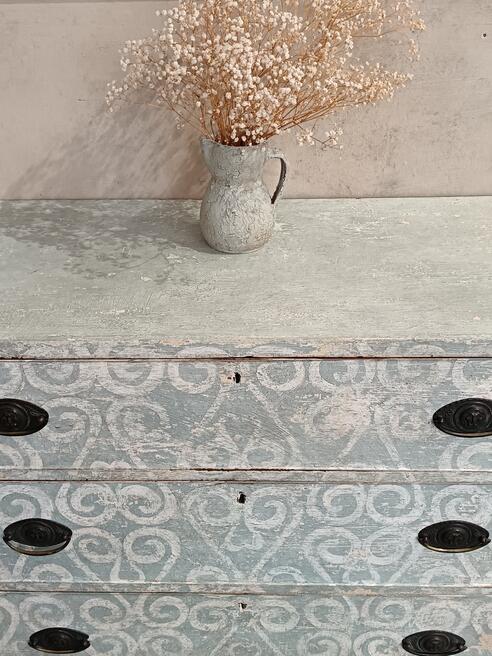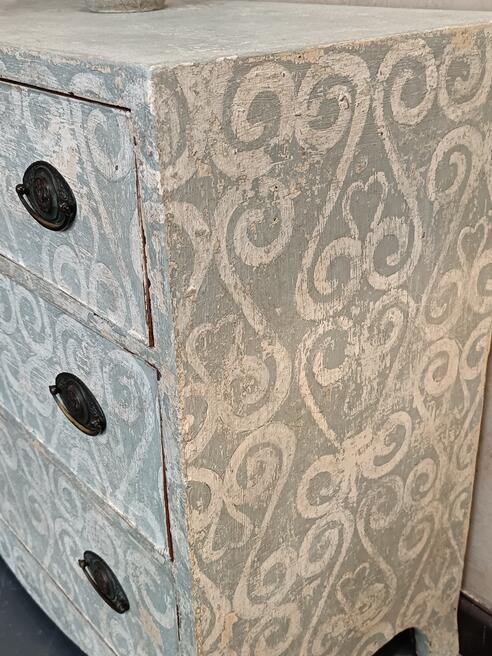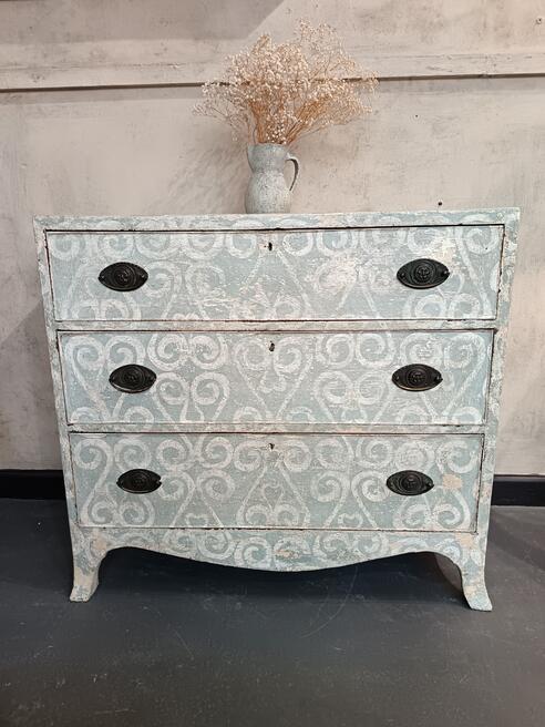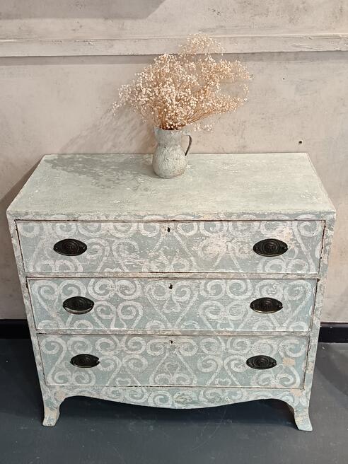 Georgian chest of drawers. ref 0529Price £495.00 Circa 1810s with three graduated drawers original swing handles , later hand painted in muted restrained colour palette boasting a decorative painted pattern with a durable wax finish. FOR SALE BREAD STREET PENZANCE TR18 2EQ CORNWALL. |