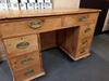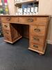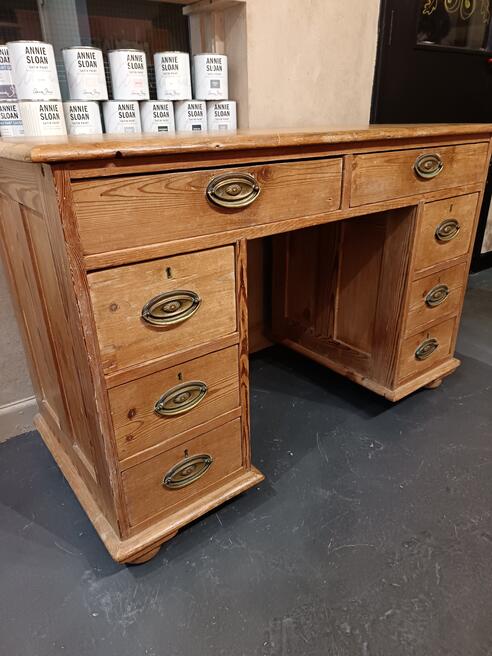Antique pine Kneehole Desk. ref 0532.Price £425.00 19thC Kneehole design desk with eight free flowing drawers warm rustic patina , brass swing handles all original and untouched. Will suit antique, modern and traditional decors. FOR SALE BREAD STREET PENZANCE TR18 2EQ CORNWALL. |