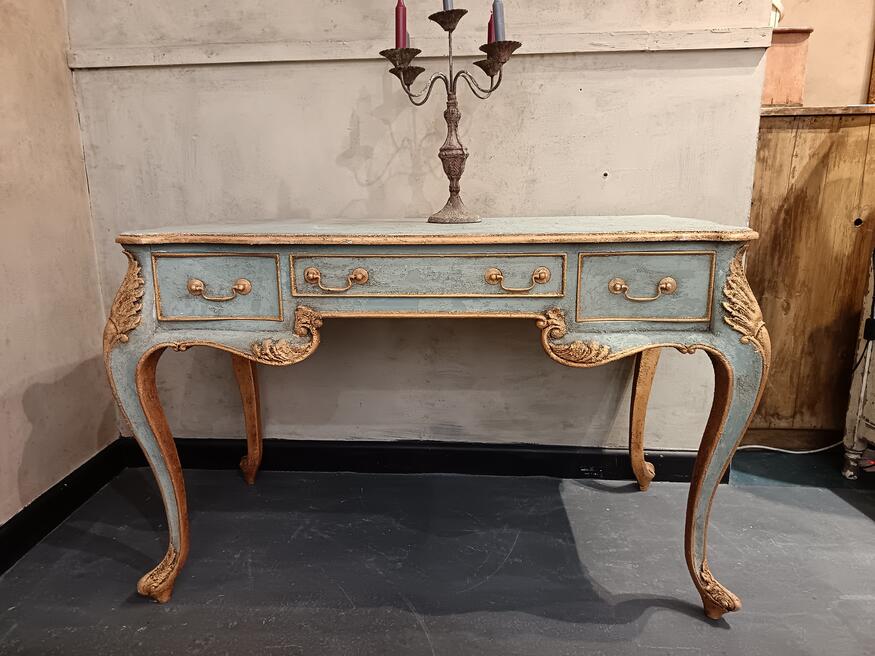 French Style Vanity dresser ref 0536Price £495.00. Start the day with this french curve appeal vanity unit , designed to be admired from both sides (centre piece) boasts a decorative painted finish in soft duck egg blues and warm golds. Ideal bedroom dresser or desktop, suitable for all spaces. FOR SALE BREAD STREET PENZANCE TR18 2EQ CORNWALL. |