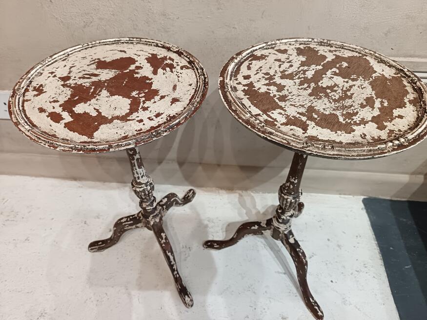 A pair of 19th C. Wine Tables. ref 0544. RESERVEDPrice £40.00 each two available. Always nice to get a pair there just slightly different, from the Victorian era lovely patina on them very elegant with unique paint work maybe to accompaniment fireside cosiness. Suitable for all spaces living, bedroom or bathroom. FOR SALE BREAD STREET PENZANCE TR18 2EQ CORNWALL. |