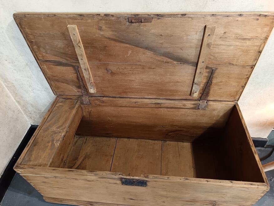 19thC Pine Trunk ref 0546Price £75.00 Alluring quirky pine box untouched blonding pine great dimensions ideal coffee table in Cornish cottage. FOR SALE BREAD STREET PENZANCE TR18 2EQ CORNWALL. |